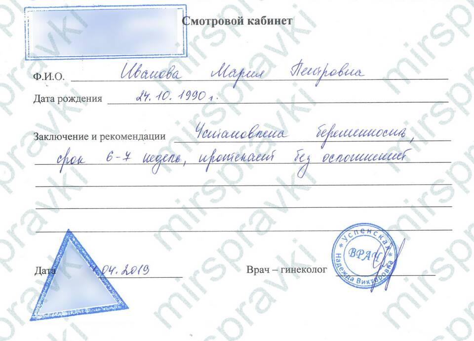 Назначение справки о беременности